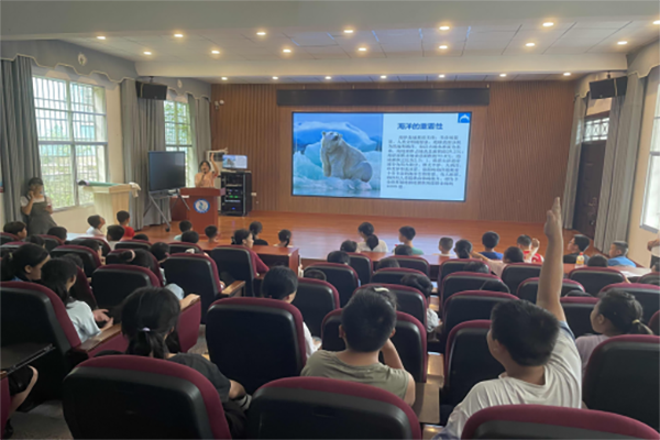 下午,在实践团开展的环保讲座中,三名队员们分别向学生们讲解了海洋环境保护、世界环境日的由来以及垃圾分类等相关内容。队员从播放一段美丽的海洋受到人类各种形式污染的短片开始,详细讲解了海洋对于生态环境的重要性、人类对海洋的污染及如何还地球一个干净的海洋。学生们认真听讲并积极回答老师提出的问题,精彩的回答会获得一张明信片作为奖励。讲座通过讲解和提问相结合的方式,帮助同学们加深了印象。