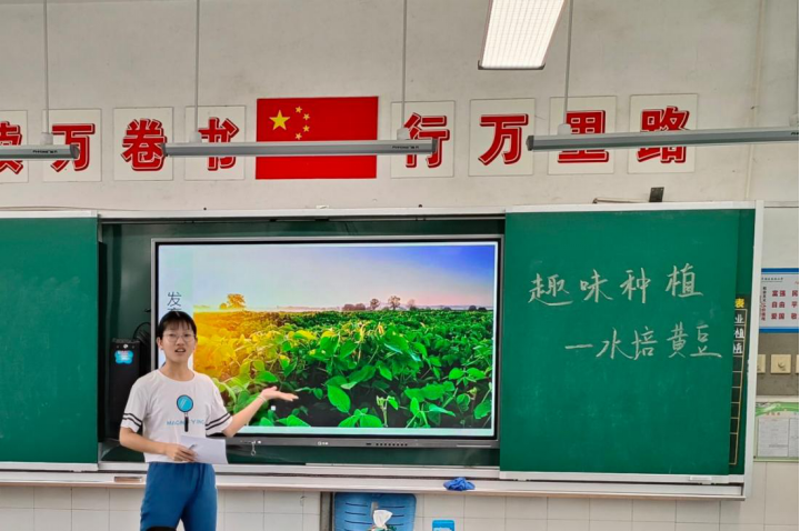 此次课程由老师讲解黄豆水培原理、学生动手实践以及老师验收成果三个部分组成。孙亚茹带领同学们认识黄豆,初步了解黄豆的生长环境与生长条件。同学们领取黄豆种子,对黄豆种子进行挑选,将发颜色不健康的、不成形的黄豆种子筛选出来。同学们在老师的指导下按照种植步骤制作培养瓶,在培养瓶底部铺一层湿纸巾,将适量的黄豆放入培养瓶中,将湿纸巾铺到黄豆上。学生进行成果展示,老师布置同学们每日进行黄豆观察日记书写和发芽进程绘画。