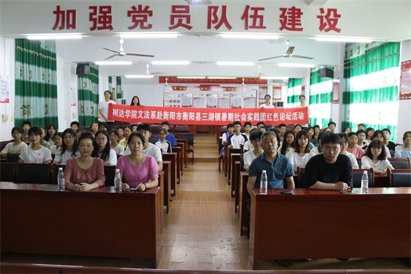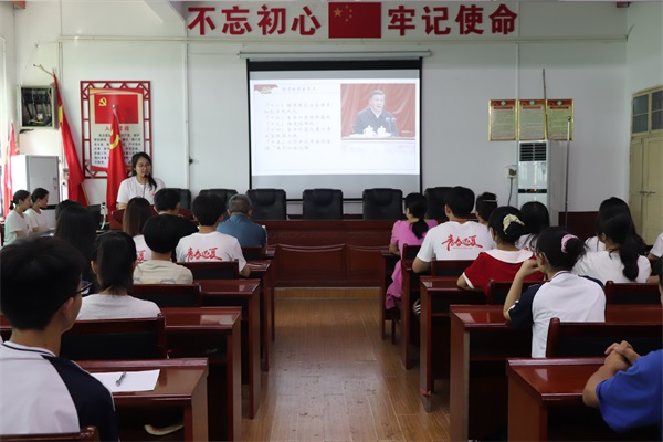 (通讯员 郭薇 晏鑫宇 曾茜妮)7月8日上午,威廉希尔中文网站平台树达学院文法系暑期社会实践团赴三湖镇鼓峰中学组织红色论坛活动。此次红色论坛以宣扬党的二十大精神为主题,鼓峰中学总务主任王青、鼓峰中学高级教师王萍、鼓峰中学教师阳美玲、团队指导老师毛一受邀参加。团队副队长银姿、郭薇担任活动主持人。