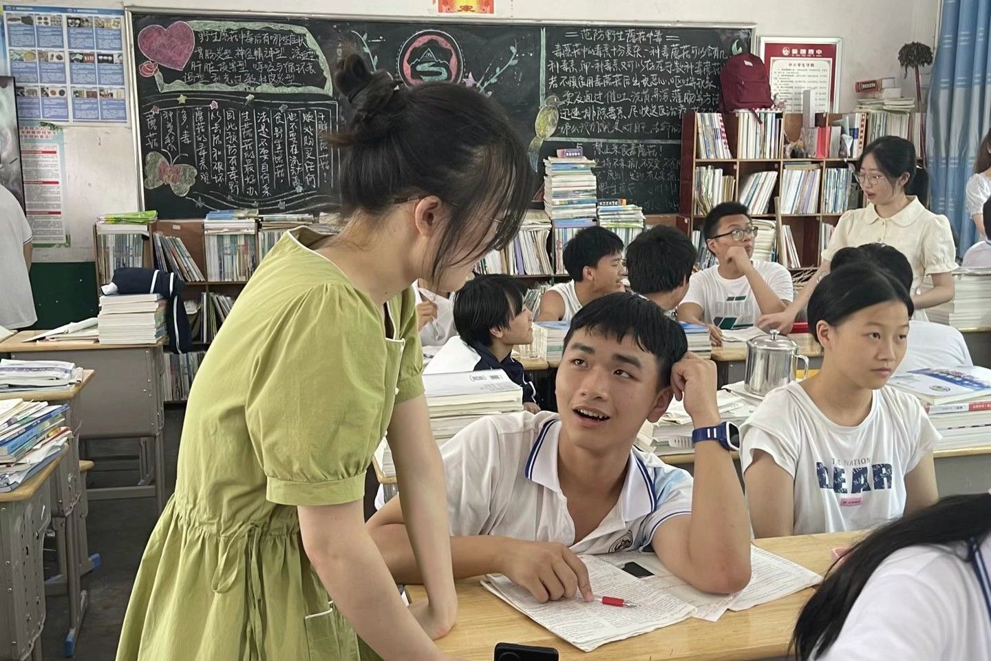 采访过程中,有小学生表示以后想当一名教师,也有大学生准备暑期外出打工。不同学生的不同规划暴露了许多问题,乡镇学生对自己的暑期大多没有明确计划,并且大学生无实习工作故外出打工的情况居多。针对上述街头采访,采访小组决定去新邵县新邵四中观察在校高中生的学习情况,并利用课间时间与四中学生进行交流。