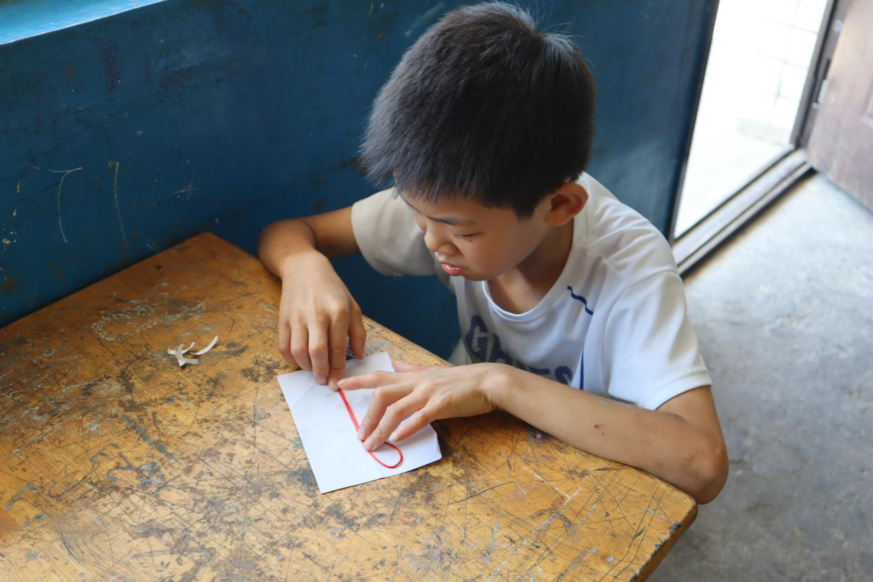 刘琪为学生带来实践课程——中国结制作。中国结艺是中国特有的民间手工编结艺术,以独特的东方神韵体现中国人民的智慧和深厚的文化底蕴。刘琪在简单介绍中国结的制作工艺后,为同学分发红绳,并带领同学一同制作简易中国结,让其在动手中体会中华优秀传统文化的深刻寓意。