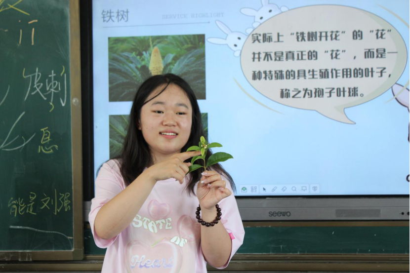 教学组成员围绕各类植物展开教学工作。教学组成员提前备课,准备授课内容,熟悉植物知识。课堂上成员们向学生讲解植物的生长环境等专业知识,带领学生们于校园中观察、接触身边的植物,并记录其形态特征。此外,教学组成员鼓励学生们描述观察到的植物特征,进行绘画。同学们对不同植物的外表性状譬如锯齿绒毛等特征进行比较,并在绘画过程中凸显出来。