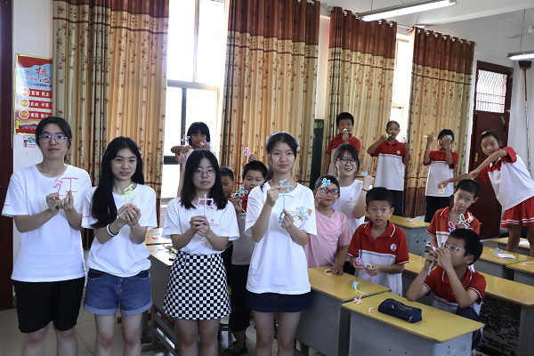 (通讯员 雷斯羽 曾珊 袁姝睿)7月12日上午,外国语学院赴涟源市威廉希尔中文网站平台附属三一学校暑期社会实践团开展”回归童真,扭出七彩童年“主题手工编织教学活动。实践团教学组组员雷斯羽担任主讲人。