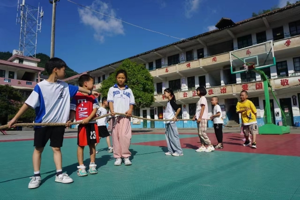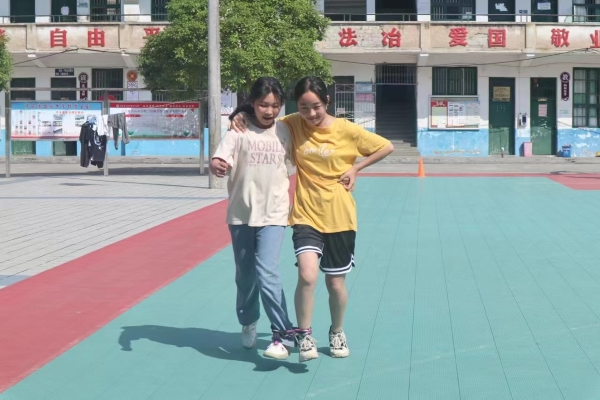 趣味运动会主要分为拔河、乒乓球运球接力赛、袋鼠跳、男女限时篮球投篮赛、4×50米接力赛、两人三足、抱球接力以及无敌风火轮八个项目。比赛项目结束后,支教队应同学们要求增设了学生与支教队队员的篮球友谊赛,友谊赛过程中,师生共同协作,迎“篮”而上,塑造了同学们的集体荣誉感,增强了班级的凝聚力与向心力,共筑师生情谊,打造向真、向善、向上的班集体。