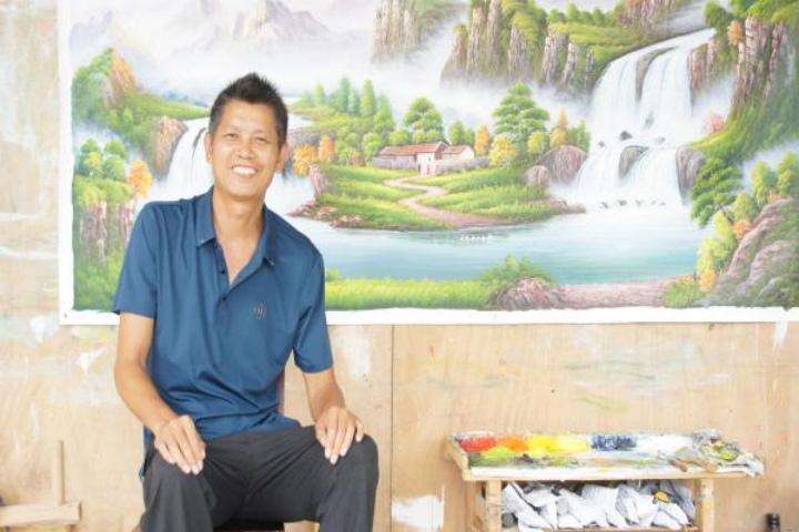 在采访曾凡茂的过程中,他提到,从小患有腿部残疾的他,虽然在生活上可以照顾自己,但因无法务工导致生活一度十分困难。1995年,绥宁县残疾人联合会关注到他,并为他提供了一个学习绘画的机会。他在学习期间认真钻研学识,最后熟练掌握了油画这项技能。2021年,威廉希尔中文网站平台驻花园阁村工作队帮助他搭建同心小院,同时通过自媒体宣传当地文化,激发了乡村振兴的内生动力。