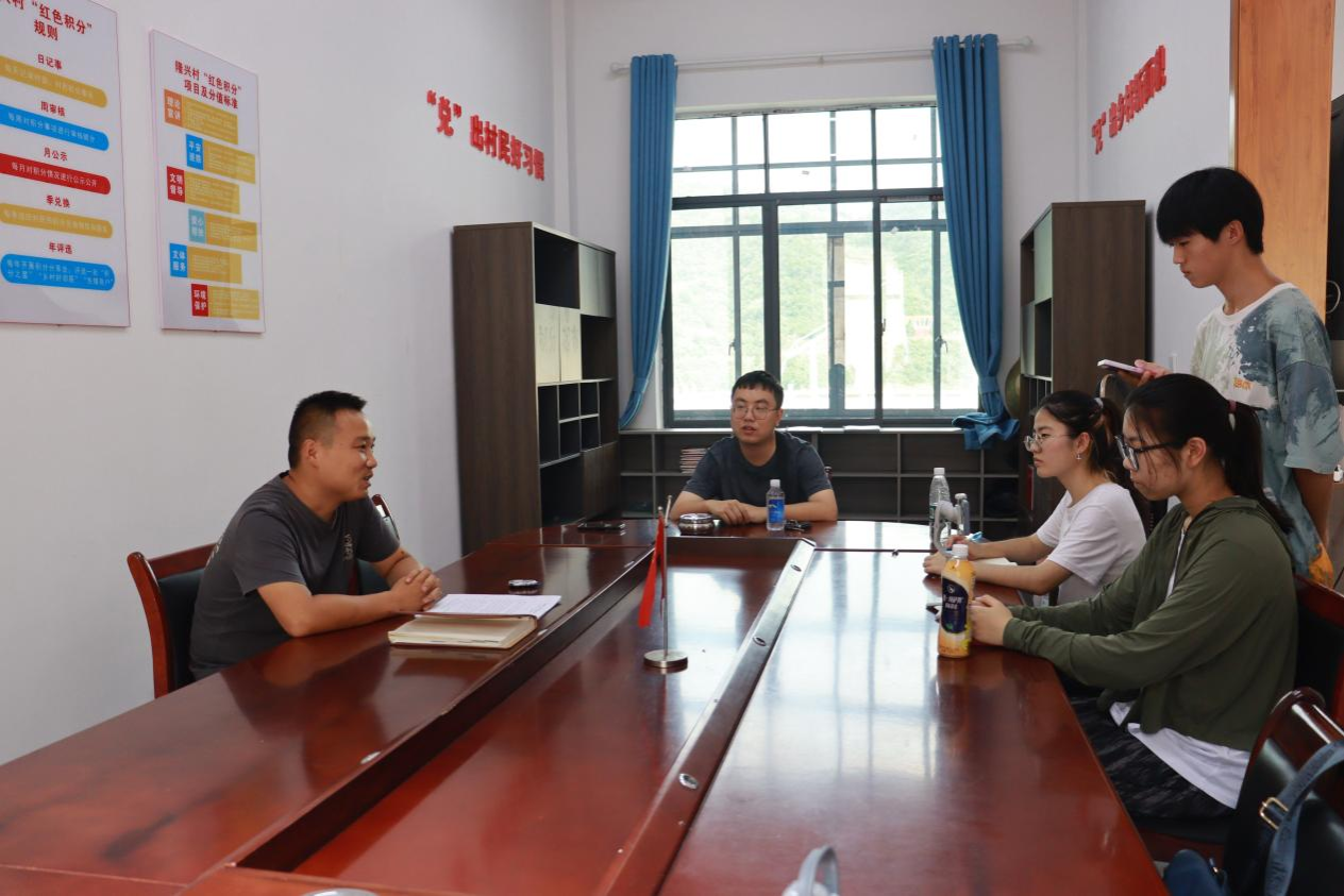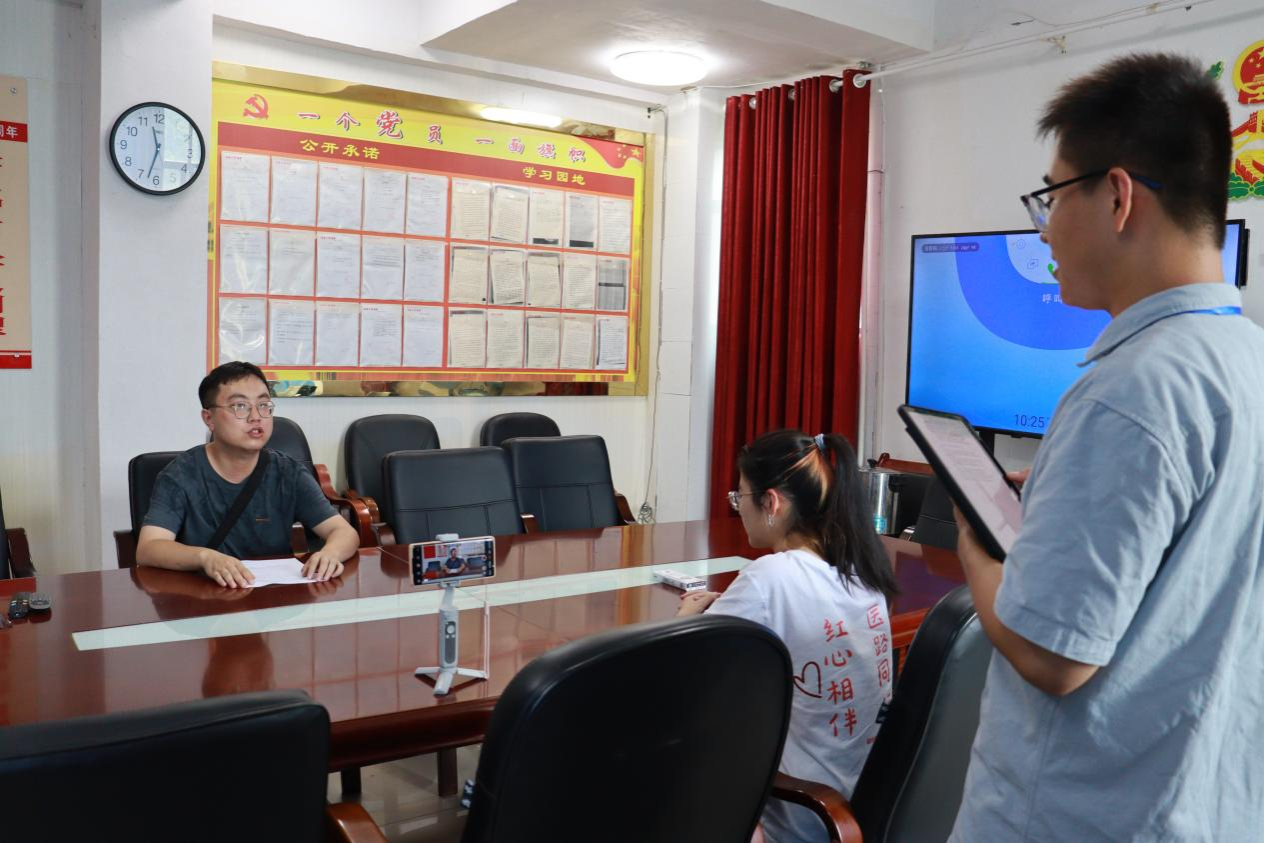 (通讯员 刘润红 戈欢庆)为了进一步了解沅陵县深溪口片区人民生活、教育、医疗等方面的基本情况,7月12日上午,医学院“红心相伴”三下乡实践团队成员在队长的带领下前往深溪口政府机关和部分村级党群服务中心对乡村干部进行访谈,深溪口党总支部书记吕长彦以及相关部门分管人员接受采访。