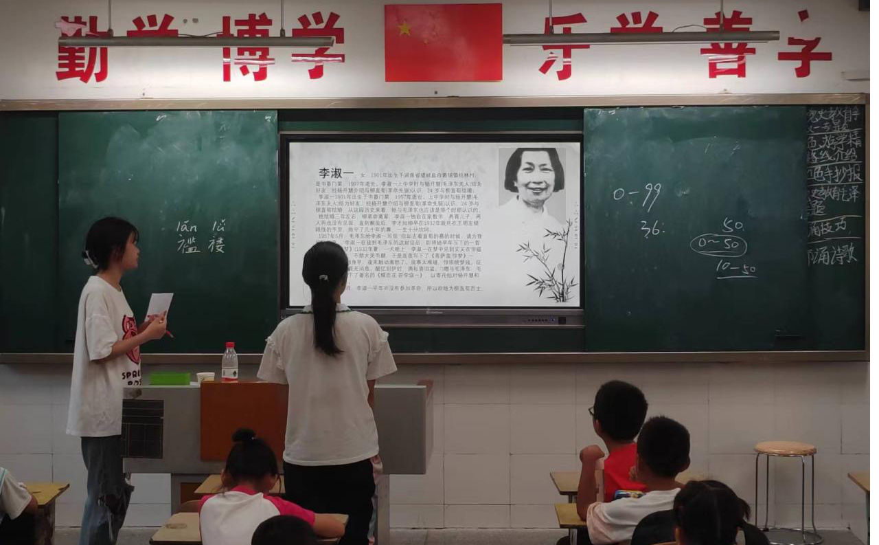 7月12日上午,“逐梦前行”实践团开展了以毛泽东同志和李淑一同志为专题的党史教育,分别由实践团成员吴诗涵、郑颖欣授课,授课对象为1班、2班的全体同学。两位实践团成员通过讲述具体的历史事件和人物的生平事迹,带动学生一起分析人物身上的伟大精神和崇高品格。在互动环节中,两位实践团成员让同学们分享自己对于课程的感悟与看法。课后,同学们表示要铭记革命历史,把红色记忆传承下去。