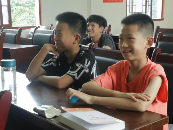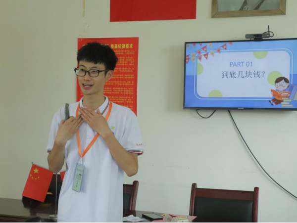 万宝村“推普活动”由授课队员胡智杰、杨灵灿主讲。活动中,队员通过情景剧演出的形式,介绍普通话的定义及学习普通话的重要性,并带领学生跟读绕口令,增加课堂趣味性。队员组织学生学习并朗诵诗歌《少年中国说》,巩固普通话学习成果,同时激发学生的爱国主义情怀。