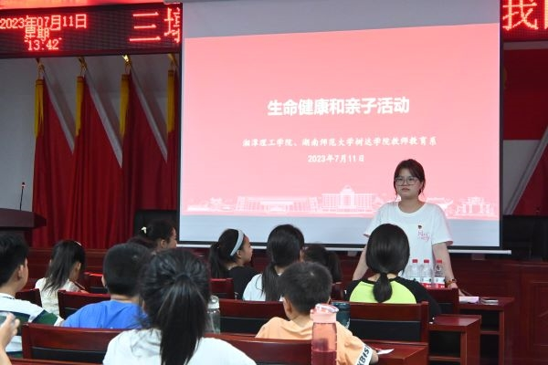(通讯员 邓瑞凌 谢晓东 粟莎)7月11日下午,威廉希尔中文网站平台树达学院教师教育系“同心燃梦”暑期社会实践团与湘潭理工学院“香梨雷小支”暑期社会实践团在平江县三墩乡戴市村合作开展生命健康讲座。教师教育系“同心燃梦”暑期社会实践团队长蓝琳担任此次活动主持人。