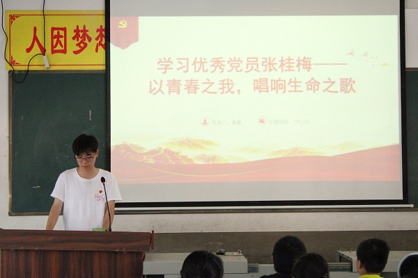 此次宣讲活动的主题为“以青春之我,唱响生命之歌”,曾鑫选取了优秀党员张桂梅的生平事迹作为课堂的主要内容,主要从行善助学、爱生如子、微笑病魔三个部分分别进行讲解,并鼓励学生要坚守初心、无私奉献、坚韧顽强,敢于拼搏与奋斗去实现自己的理想抱负。