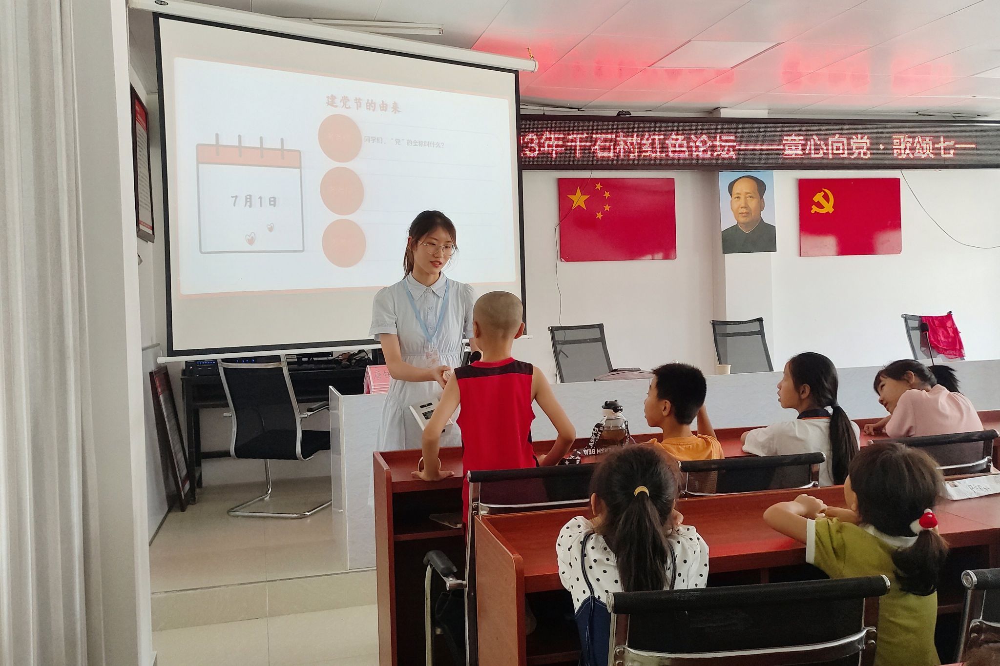 (通讯员 左思雨 杜寅睿 唐雨乐)7月6日至7月12日期间,教育科学学院“护航者计划”——赴岳阳市平江县暑期社会实践团在千石村村民服务中心开展红色论坛系列课程。课程包括七一主题课程和红色故事演讲活动,由实践团成员杜寅睿和左思雨共同组织,千石村夏令营兴趣班全体同学参与。