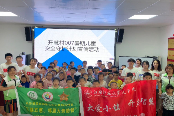 “星火”队与长沙县民政局联合开展了“开慧村007暑期儿童安全守护计划”宣传活动,“星火”队队员伍禺祺作为主要的安全知识讲解员,为开慧村学生科普安全知识。伍禺祺围绕交通安全、消防安全、严防溺水、谨防诈骗以及校园欺凌五个方面分条讲述。伍禺祺以视频为主要授课形式,向学生展示了安全问题的严重性,并向开慧村学生科普如何找出自己身边存在的安全隐患后保障自己的人身安全。伍禺祺还利用情景剧演绎,提高了学生的安全意识。