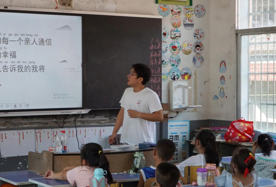 (通讯员 杨竣亦 朱治平)7月12日上午,“清风拂坪,’沅’梦同行”——威廉希尔中文网站平台学生会赴怀化市沅陵县杜家坪乡暑期社会实践团在杜家坪九校小学班开展现代诗歌拓展教学。