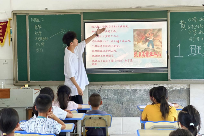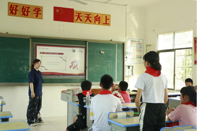 (通讯员 龙云)为追寻红色记忆,传承红色文化,充分挖掘红色基因的育人价值。7月14日上午,美术学院“同心绘梦”队在益阳市张家塞乡胜利小学开展红色主题课本剧体验课程。课程由美术学院2021级本科生谭竞、2022级本科生黄英佶主讲。
