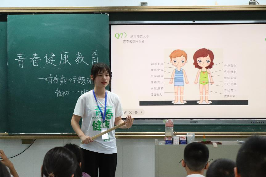 主题教育活动的第一课时为“青春期的性教育”,刘芊芊围绕“青春期身体变化”“认识生殖系统”“养生防护小知识”三个话题,讲解青少年青春期的生理发育情况,并通过小组竞赛问答的形式巩固学生的性教育知识学习。主题教育的第二课时为“守护心理家园”,李明慧向学生科普压力的源头、心理的现象、压力的舒缓等专业知识,在互动问答中拉近了师生间关系。主题教育活动的第三课时为“安全知识科普”,肖艳萍从交通安全、公共安全、食品安全、自然灾害四个方面向学生阐述人身安全的重要性,并通过具体案例讲解如何保护人身安全。
