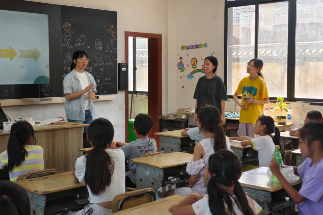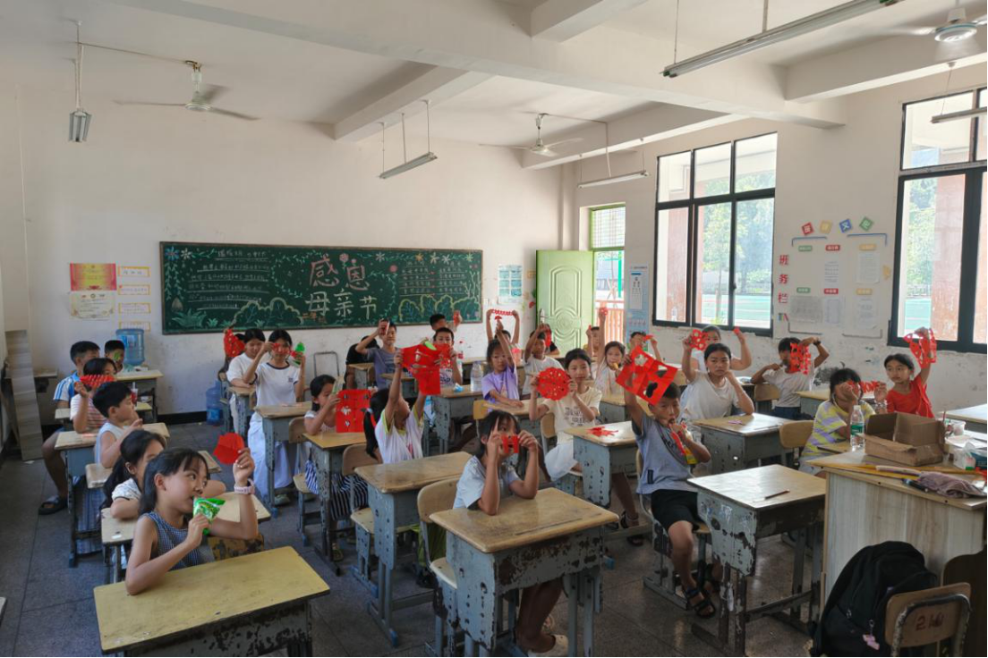实践团首先在火场土家族乡九年一贯制学校组织了班会课,带领小朋友们设计了专属人物形象并进行自我介绍,增进彼此了解,促进了支教活动的开展。随后,实践团将民法知识搬进课堂。课上,成员们通过情景故事、闯关问答等创新形式为小朋友们普及了法律常识与法治思想。孩子们则通过举手发言的方式与实践团成员们进一步交流,主动加入课堂、学习新知。此外,实践团给孩子们带来了手工剪纸课和太极拳课,进一步丰富了孩子们的课外活动。