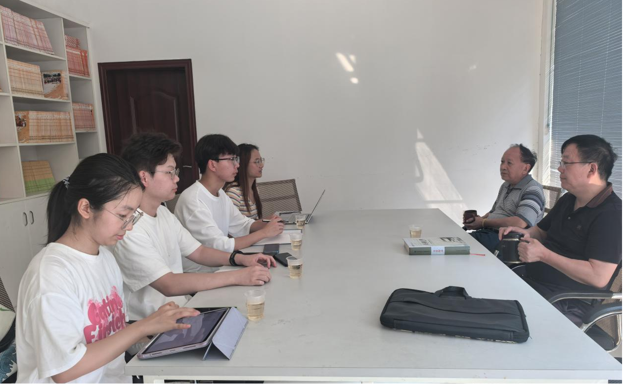 唐青平向成员们介绍炎帝文化研究会的工作内容,包括出版炎帝主题书籍50余套、创办文化普及项目"炎帝讲堂"、提供企业文化咨询服务、联动湘赣边11县市及全国始祖圣地开展学术交流,并发展政策建言服务区域。在非物质文化遗产保护方面,研究会重点开展国家级非遗"炎帝陵祭典"和省级非遗"炎帝传说"的保护工作,相关研究成果已被编入中小学教材《炎帝文化》。为促进两岸文化交流,研究会持续多年组织清明公祭活动,并接待多批台湾师生参访团。实践团成员了解到研究会面临无固定财政拨款导致资金短缺及地方研究人才匮乏的双重挑战。针对人才短缺问题,唐青平建议大学生积极参与学术研究、文化实践及产业融合等,实践团成员表示后续会根据此次谈话内容给出解决方案并做出实际行动。