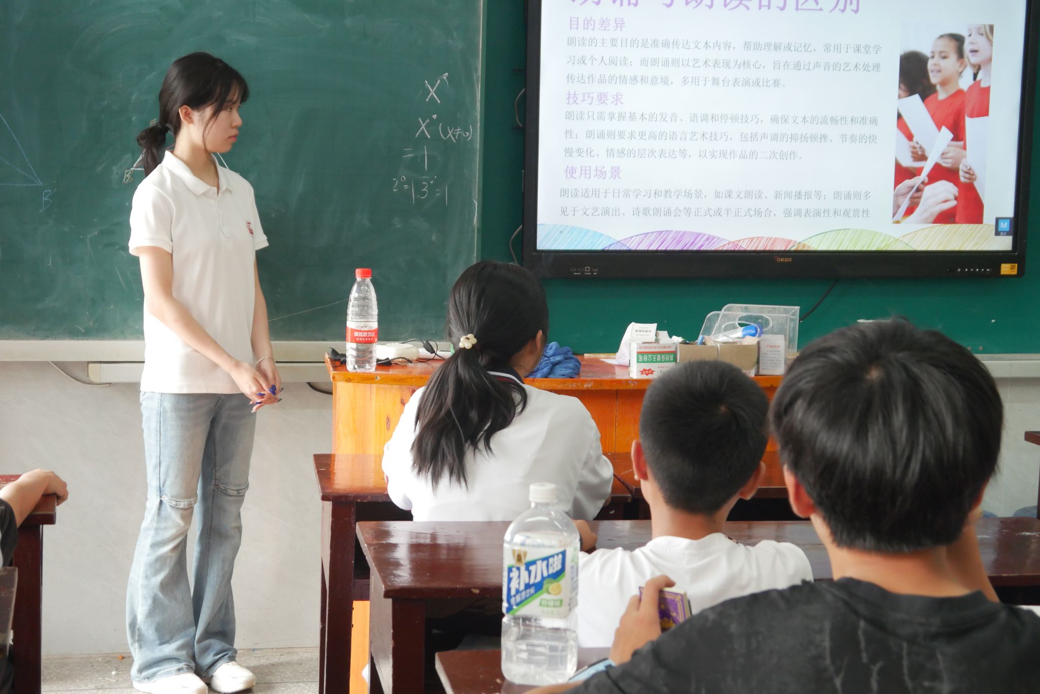 课程成效显著,学生不仅系统学习了朗诵知识体系,更在互动实践中提升了情感和语言传递能力。此次课程为当地学生搭建了感受语言魅力的平台,助力他们在表达中实现“以情带声、声情并茂”,让文字通过朗诵“活起来”。