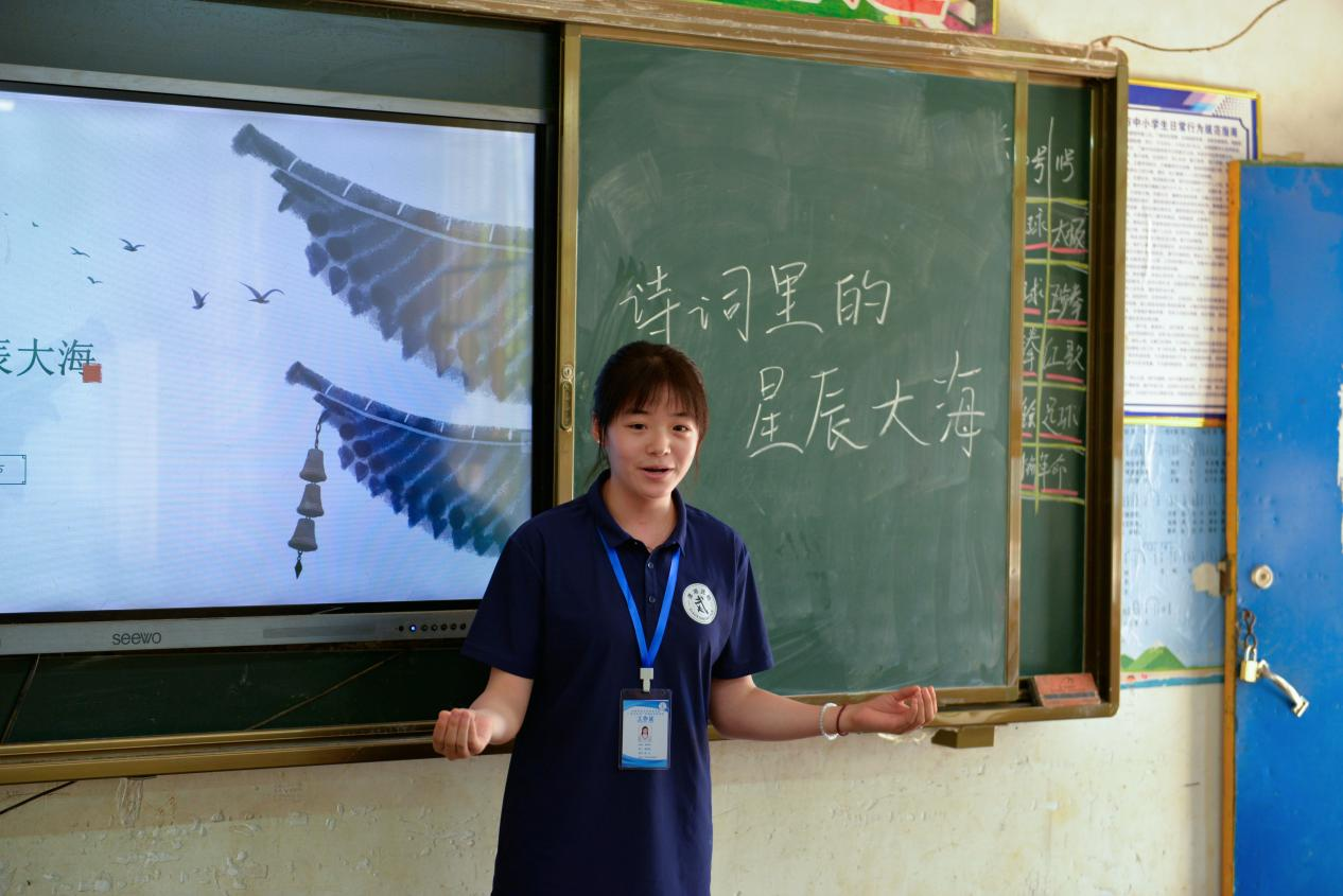 (通讯员 李梓霂 许荠云 周怡萌)7月9日上午,“潇湘武韵”暑期社会实践团于罐头嘴中学开展诗词鉴赏课程。实践团成员以“中国式浪漫”为切入点,面向乡村学生开展系统的诗词文化学习课程,助力乡村学生全面发展。