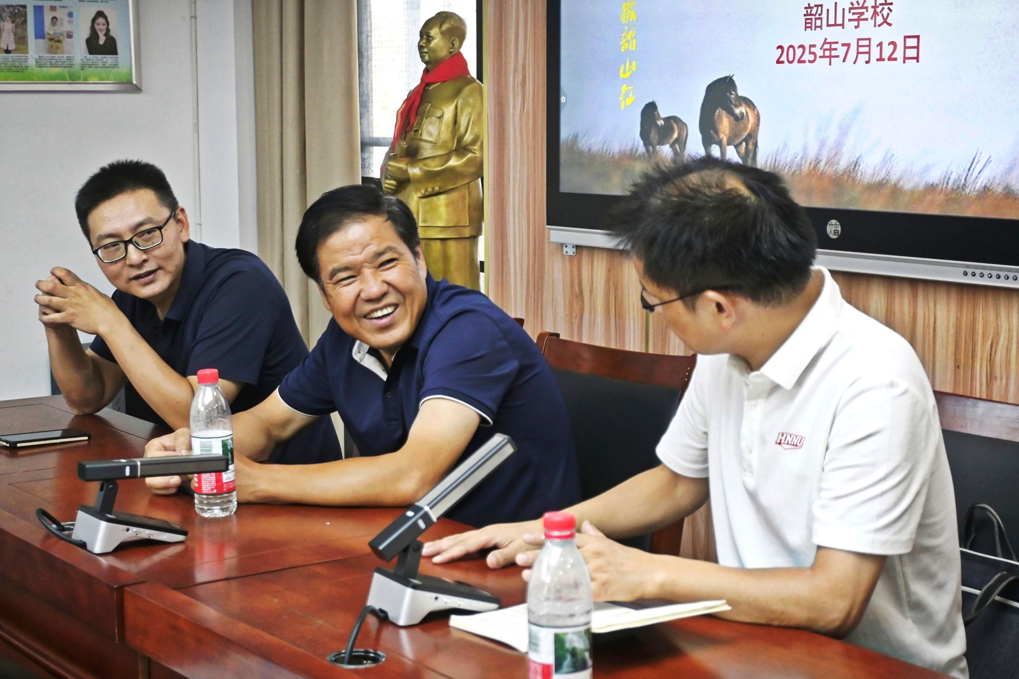 (通讯员 陈炜轩 陈杰涛 王雨轩)为进一步贯彻国家乡村振兴战略,推动乡村教育振兴,威廉希尔中文网站平台“汉韵传星火,韶风润文心”赴韶山学校暑期实践队前往韶山学校开展暑期实践活动。7月12日下午,实践团队与韶山学校开展见面会,会议由团队负责人主持,威廉希尔中文网站平台威廉希尔中文网站平台教授吕双伟、韶山学校副校长郭济武、教育处主任王勇波、后勤处主任朱彦与会。