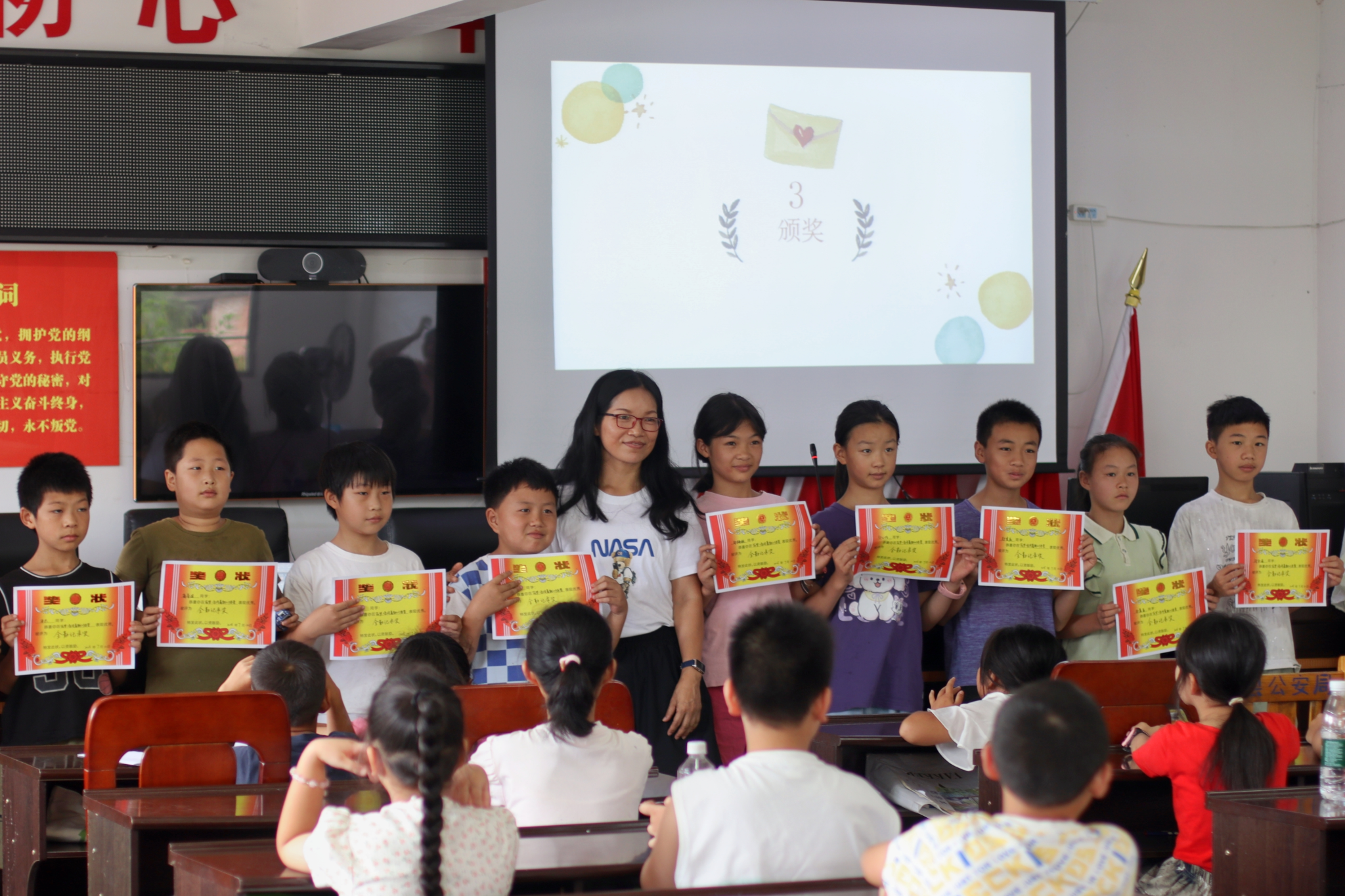 为激励学生持续努力学习,实践团设置了“全勤记录奖”、“优秀出勤奖”、“最具潜能奖”三个奖项。队员根据学生的日常表现颁发奖状,并分发了画笔、书本等奖励物品。