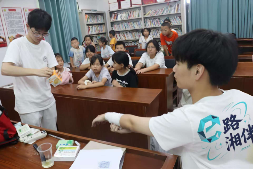 (通讯员 李丰耘 单子洋)7月13日上午,威廉希尔中文网站平台信息科学与工程学院“e路湘伴”暑期社会实践团(以下简称“实践团”)走进怀化市沅陵县岩板铺村开展特色急救课程。此次课程聚焦乡村儿童安全教育需求,通过趣味化、情景化的教学方式,助力提升孩子们的自我保护与互助能力。