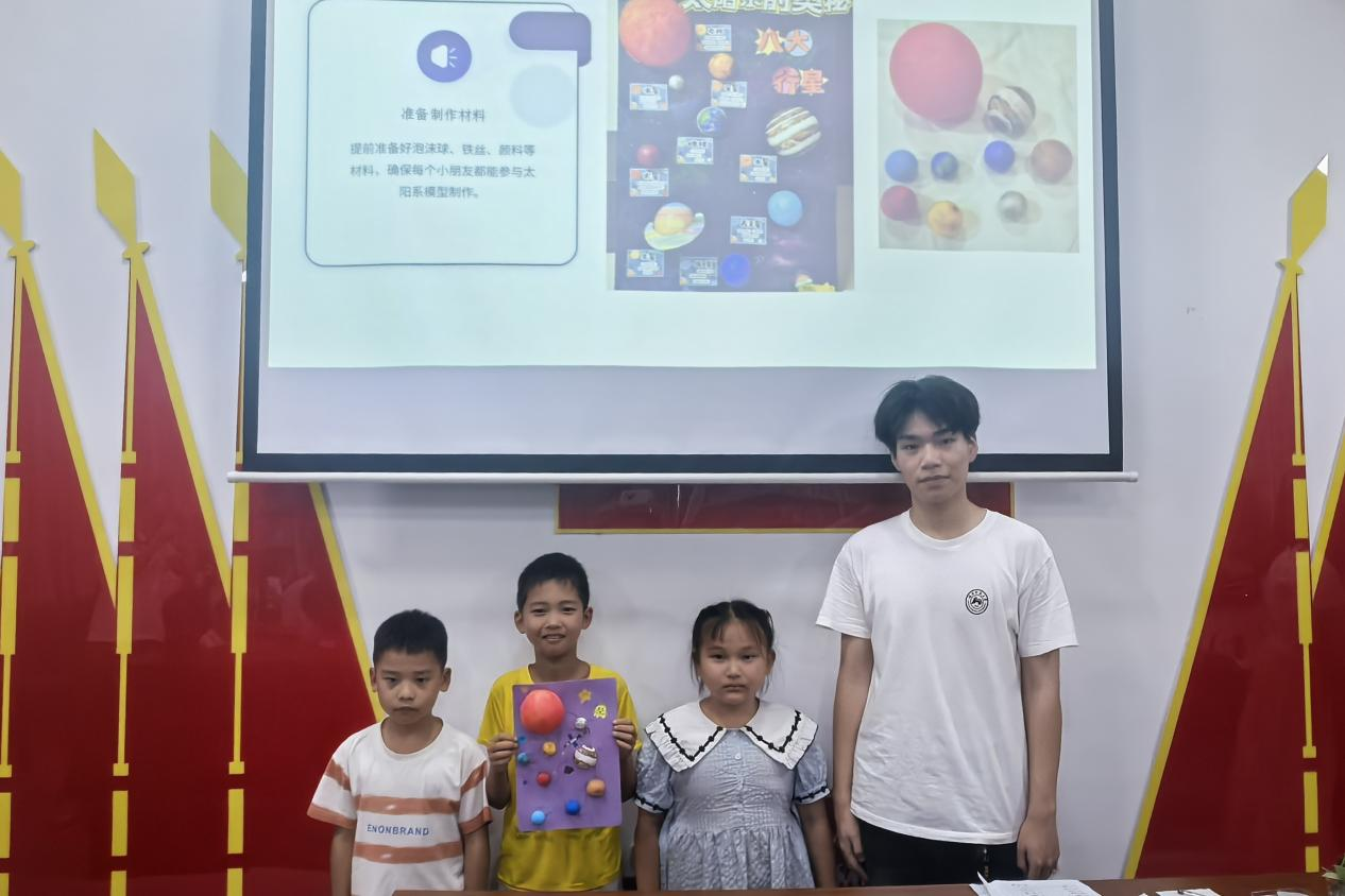 课程尾声,主讲人指导学生们动手实践,制作属于自己的八大行星模型。在制作过程中,主讲人适时讲解八大行星的运行轨道等知识,让同学们在实践中加深对行星的认识。