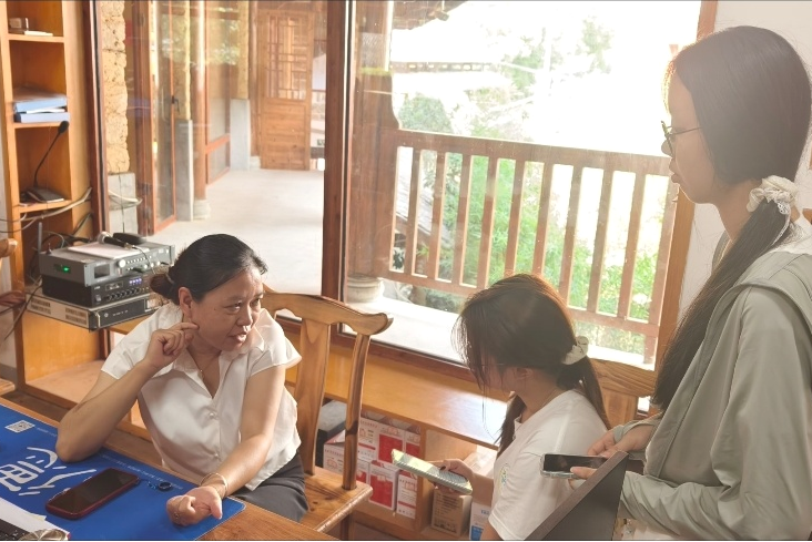 实践团成员首先赴清水村“雷公洞”景区进行实地考察。调研组成员系统记录目标区域的植被分布特征并勘察周边山体的地质构造特征。在清水村百寿广场上,调研组六名成员均分为三组,对百寿广场周边村民、游客以及商贩开展访谈与问卷调查工作。调研一组实地访谈村民,就村庄生态变化认知及绿色文旅对生活的影响开展调研。调研二组通过采访当地商贩,了解其经营项目、收入变化以及对文旅发展带动收入增长的诉求。调研三组向游客发放问卷,内容涵盖对清水村自然环境、生态保护举措的满意度以及对绿色文旅项目的建议等。