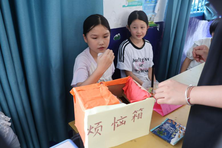 活动以“话‘夏'一个未来”为主题,通过互动环节引导学生畅想未来、共话成长,为校园生活注入活力,共分为四个特色环节。在“夏影立画坊”环节中,学生们发挥创意,用硬卡纸制作个性化名字立牌并分享设计巧思;“关键词旅记”环节,同学们以城市为线索,通过抽取城市名称、观赏风光照片、聆听老师旅途故事,感受“读万卷书,行万里路”的意义;“解忧杂货铺”环节通过集体讨论师生烦恼,传递互助温暖;“晴空学业站”则邀请实践团教学组两位成员分享实用学习方法,为学生学业发展提供指导。活动尾声,全体人员合影留念并共同清理现场。