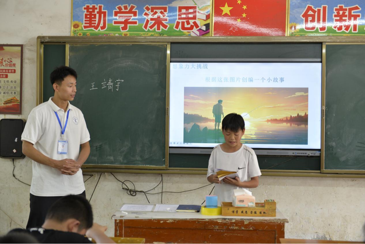 (通讯员 曹家溢 周怡萌 宋智慧)7月15日上午,威廉希尔中文网站平台体育学院 “潇湘武韵” 暑期社会实践团在汉寿县罐头嘴中学开展 “故事创编想象力大挑战” 主题课程。该课程以“经典解构 + 创意生发”为核心,将《龟兔赛跑》等传统故事解析与图片灵感创编相结合,旨在通过经典重构与图片创编,提升乡村学生的批判性思维与语言表达能力,同时推动文化传承创新。