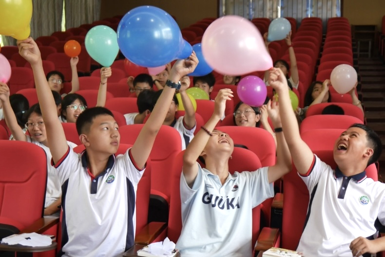 活动围绕心理健康主题设置多个互动环节。“女巫的毒药”中,学生匿名写下情绪“毒药”,通过猜词讨论学会正视情绪;“寻人启事”让大家用“我……”句式描述自身特征,在猜测中加深彼此了解;“彩虹夸夸团”以音乐为令,同学们通过剪刀石头布互动,为获胜者写下夸赞贴在对方身上,传递正向能量;“随心所欲”环节,学生自由撕纸后再将纸展开,在差异中感受个性;“合力吹气球”要求六人分组协作,通过分工完成吹气球、坐破气球任务,锤炼团队意识。一系列环节从情绪管理、人际联结、自我认知、团队协作等维度,搭建起心理成长阶梯,助力学生在体验中实现心灵滋养与能力进阶。