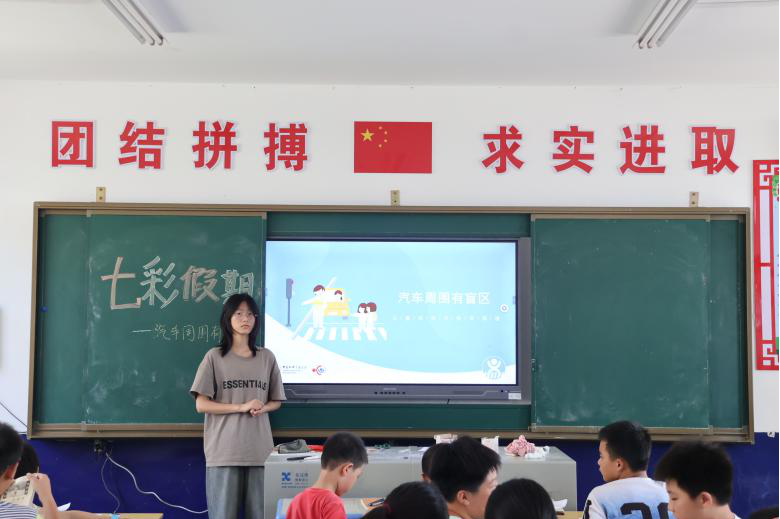 (通讯员 唐添 周佳敏)为增强暑期学生交通安全意识,7月18日下午,马克思主义学院“炎阳”暑期社会实践团在湖泉镇中心中学开展“汽车周围有盲区”主题课程,实践团成员周佳敏及夏令营全体学生共同参与。