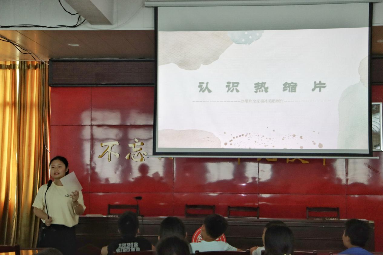 (通讯员 蒋梓溦 向往)为关注学生素质发展,医学部“医路乡随”学生会三下乡社会实践团于7月20日在湖南省株洲市宁家坪镇杜口村,面向当地中小学生组织开展了热缩片手工课程。本次活动由实践团成员担任主讲与指导,共有45名学生参与。