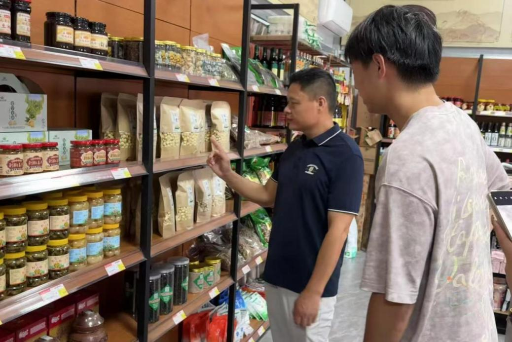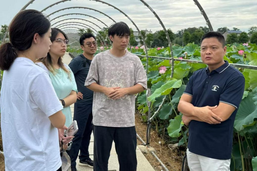 调研过程中,董事长邓阳生接待实践团,从荷花产业培育到景点整体布局,讲解荷花里如何以“荷”为核串联起自然景观与文化体验。在特色农产品营销中心,邓阳生展示当地特色的莲子羹、田尾豆油等农产品。他介绍道:“这些农产品不仅是村民的‘致富果’,更是农耕文化在现代产业中的鲜活体现。”二十四农耕文化墙前,讲解员结合壁画,解读节气与农事的关联,让队员触摸传统农耕智慧。邓阳生谈及返乡创业初心,从单一的荷花种植到“文旅+农业+文化”融合发展,荷花里已带动周边50余户村民稳定就业。多年来,他累计捐赠超百万元用于公益事业,用责任与担当成为家乡人心中的榜样。