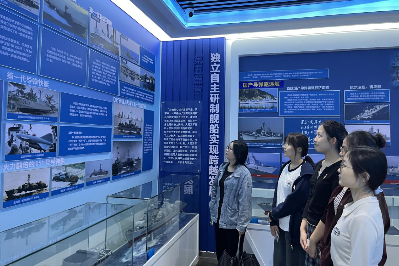 在近现代海军装备主题展馆内,党支部成员借助舰船模型、图文史料及互动体验项目,直观感悟人民海军从无到有、由弱至强的发展脉络,同时认知到我国海军捍卫国家主权与海洋权益的坚定立场和硬核实力。