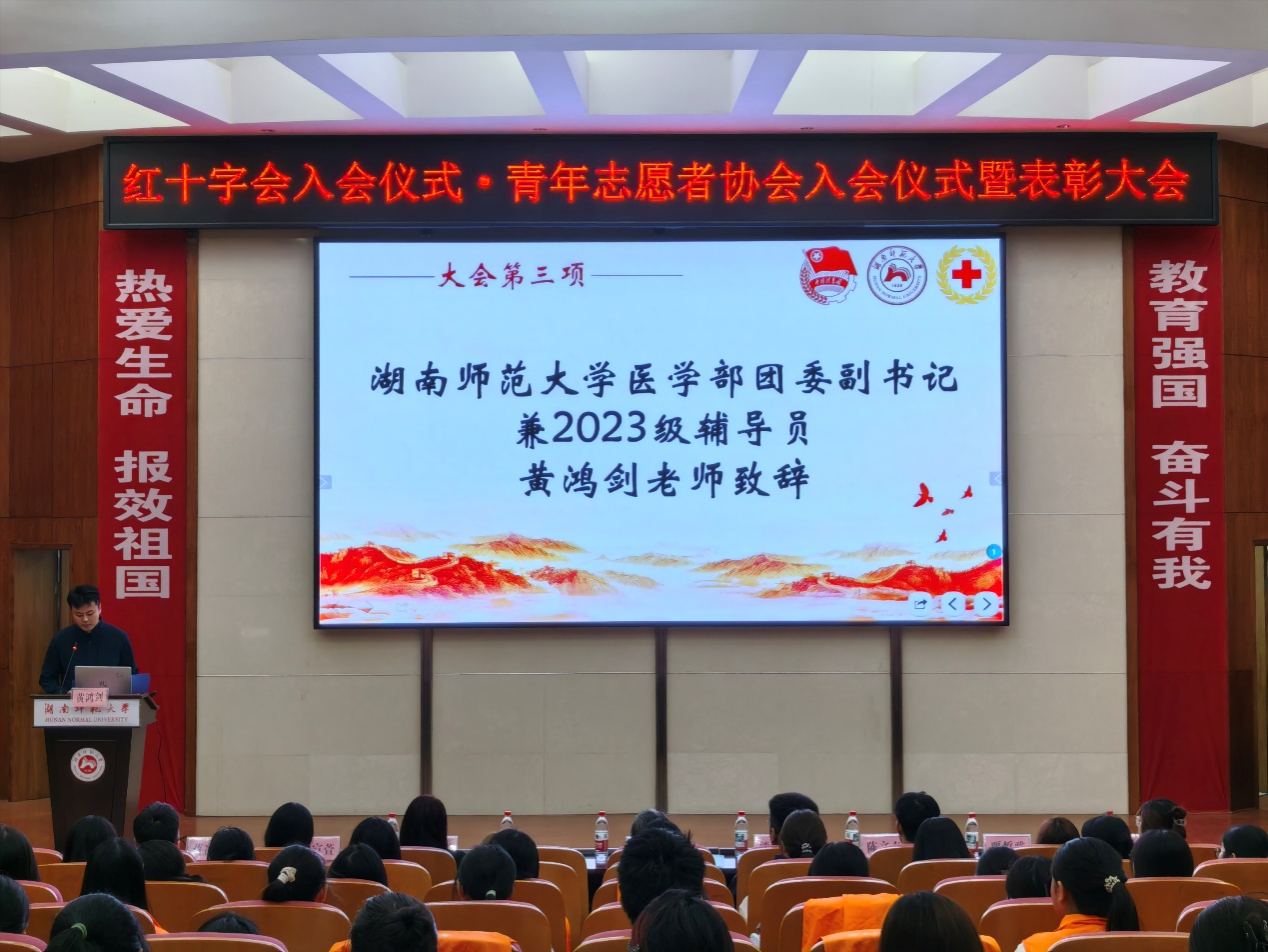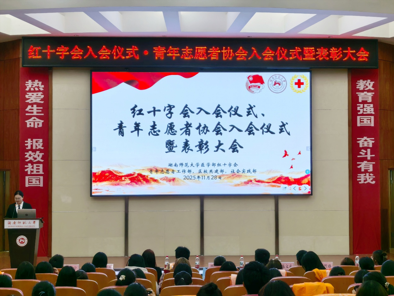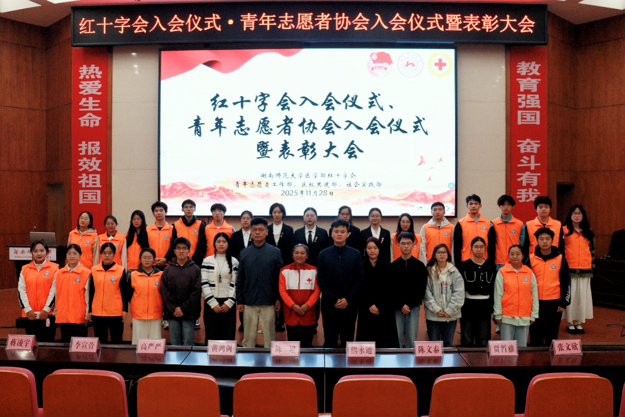(通讯员 杨奕轩 黄婕 陈浩林)为发扬红十字精神,激发青年学子社会责任感,11月28日中午,医学部开展红十字会入会仪式、青年志愿者协会入会仪式暨表彰大会。长沙市红十字会志愿服务队队长、威廉希尔中文网站平台红十字会特聘指导老师陈旭受邀出席。医学部团委副书记、2023级辅导员黄鸿剑,2025级辅导员高严严、熊永通出席大会。红十字会、青年志愿者协会全体成员以及医学部部分同学参加。