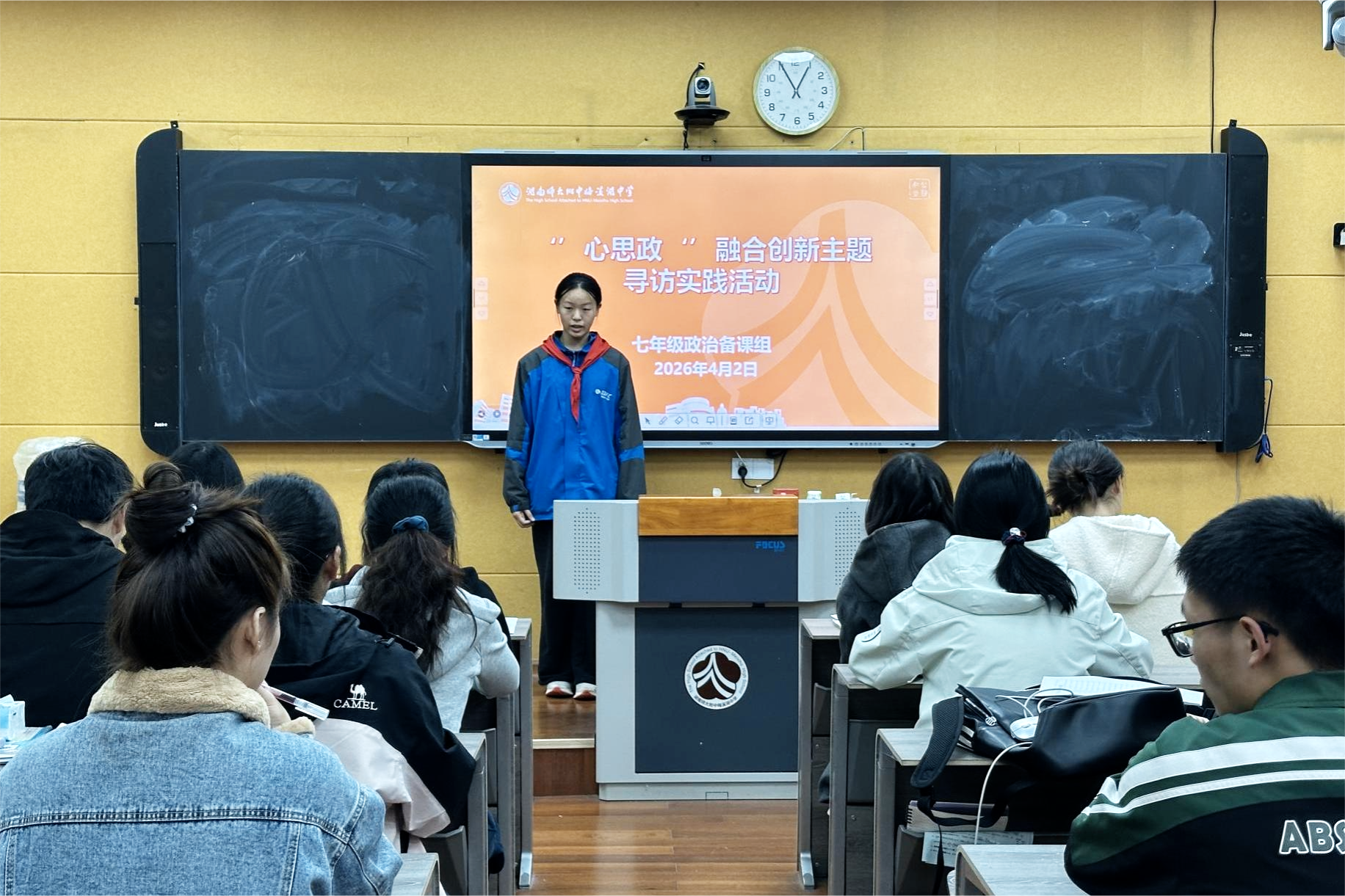 (通讯员 许思甜 郑丽宏 顾卿)4月2日下午,马克思主义学院赴湖南师大附中梅溪湖中学实习队在实习学校开展“心思政”融合创新主题寻访实践活动的学生选拔工作,七年级年级副组长钟丹老师及全体实习队员参与此次活动。